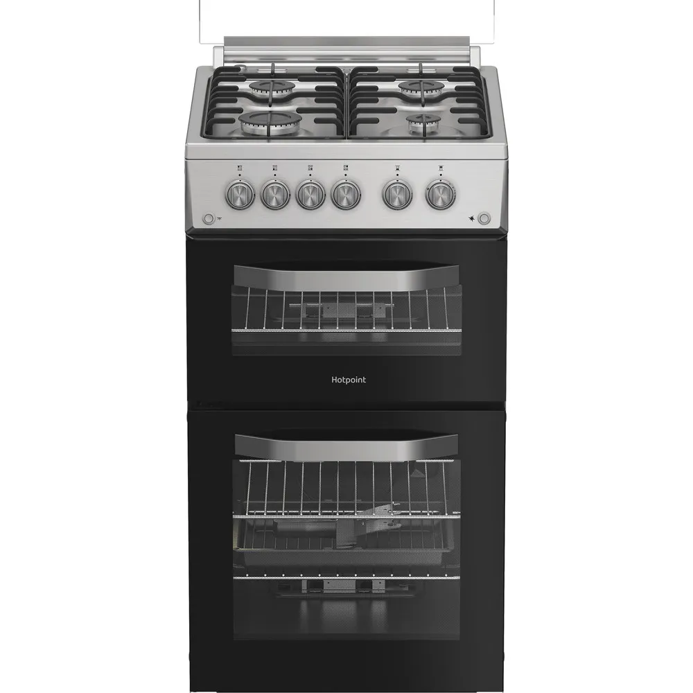 Hotpoint HDG5GCX 50cm Double Oven Gas Cooker with Glass Lid in Stainless Steel new